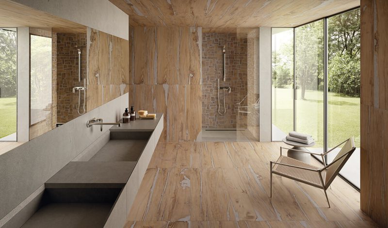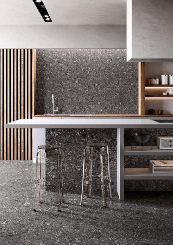Το Concrete Wood είναι μια από τις δημοφιλέστερες επιλογές στα μοντέρνα πλακάκια κουζίνας ίσως διότι προσθέτουν έναν μοναδικό χαρακτήρα. Αυτά τα πλακάκια λειτουργούν εξαιρετικά καλά ως μέρος της διάταξης της κουζίνας και ταιριάζουν εξαιρετικά με μονάδες και πάγκους εργασίας σε μαύρο ή ανθρακί χρώμα. Αυτά τα πλακάκια μπορούν να συμπληρωθούν με ξύλινα εξαρτήματα και φυσική πέτρα προσφέροντας εκπληκτικά αποτελέσματα. Μια δημοφιλής τεχνική είναι ο συνδυασμός του Concrete wood effect με ένα χαρακτηριστικό ολίσθησης τοίχου από τούβλα.