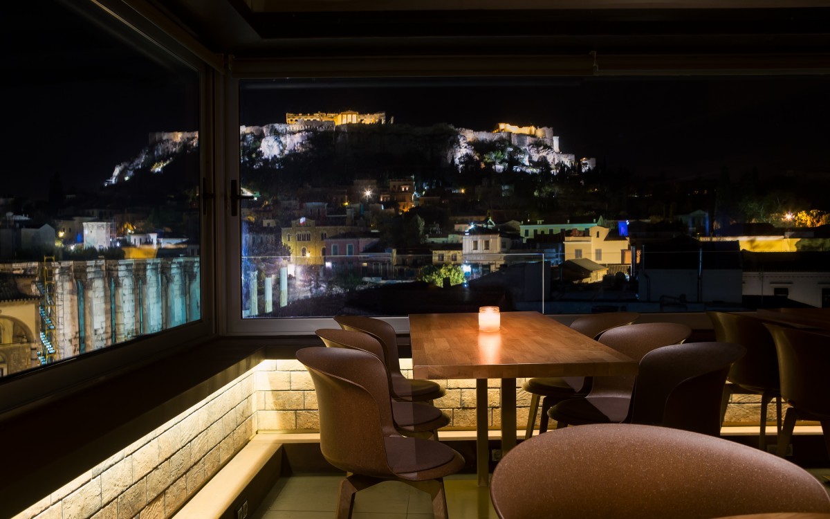 Ακριβώς δίπλα στο σταθμό Μοναστηράκι του μετρό, το “Α for Athens” (www.aforathens.com) διαθέτει 35 δωμάτια όπως επίσης και ένα από τα πιο δημοφιλή roof bar με εκπληκτική θέα στην Ακρόπολη. Οι συνοικίες Ψυρρή, Μοναστηράκι και Πλάκα με την έντονη νυχτερινή ζωή, απέχουν μόλις 5 λεπτά με τα πόδια. Τα δωμάτια διαθέτουν μεγάλα παράθυρα τα οποία προσφέρουν εκπληκτική θέα στην πόλη. Ορισμένα δωμάτια του ξενοδοχείου είναι εξοπλισμένα με σάουνες και μίνι πισίνες στα μπαλκόνια.