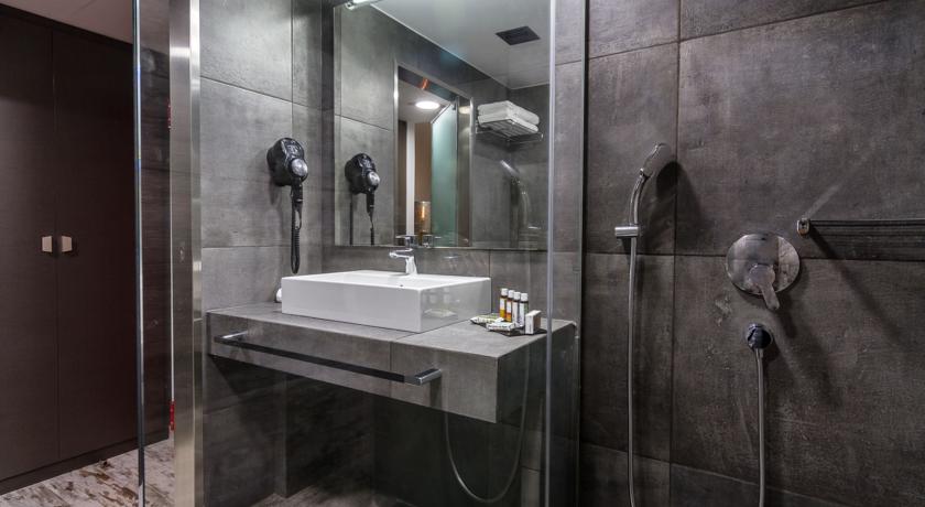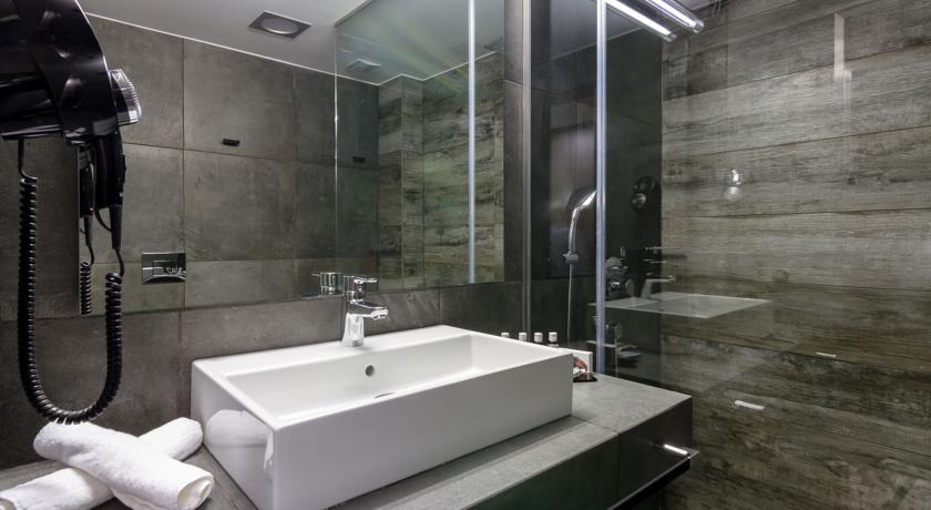 Το αρχιτεκτονικό γραφείο “Urban Soul Project” (www.usp.gr) οραματίστηκε ένα pop ξενοδοχείο στο κέντρο της πόλης. Με αυτό ως κριτήριο επιλέχθηκαν mat πλακάκια τα οποία θυμίζουν παλιό μωσαϊκό. Το γκρι χρώμα του μωσαϊκού συνδυάστηκε με pop ύφους έπιπλα σε πράσινους χρωματισμούς.