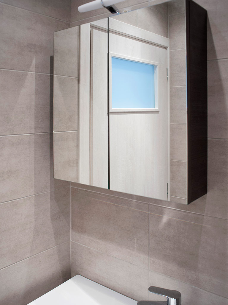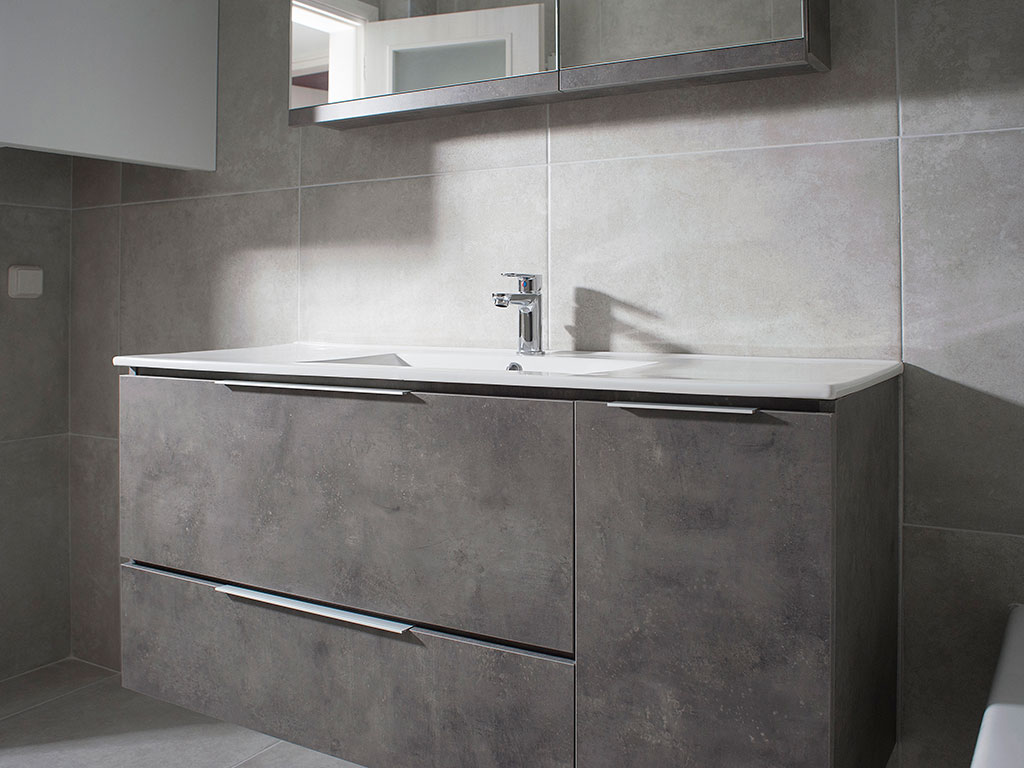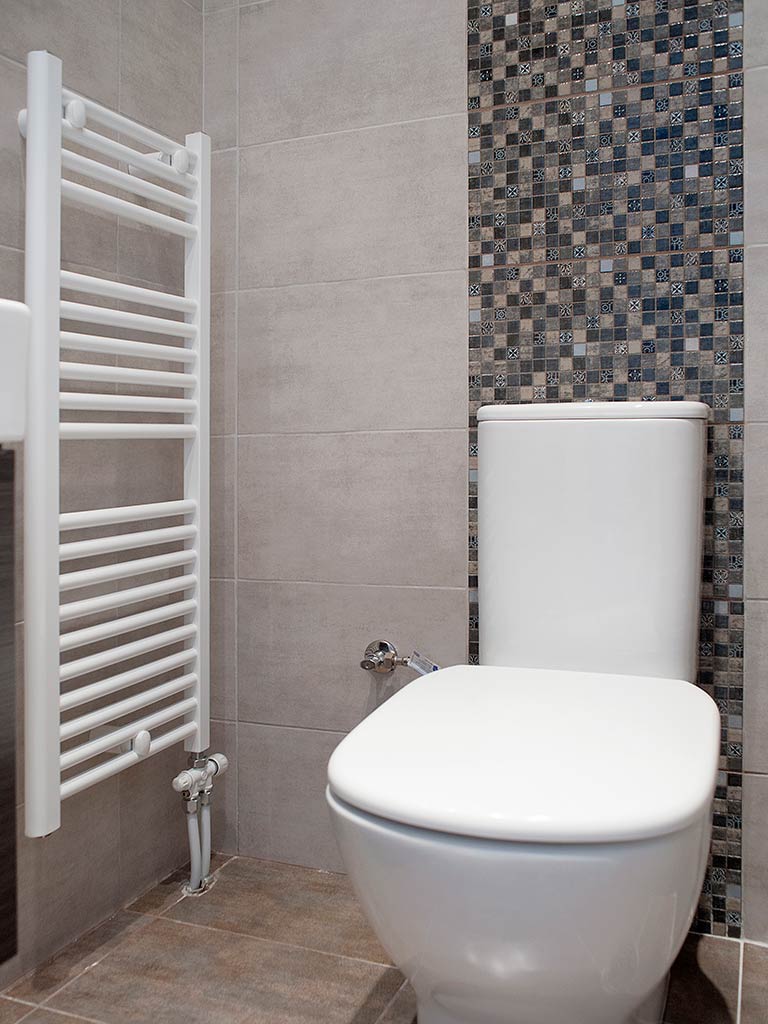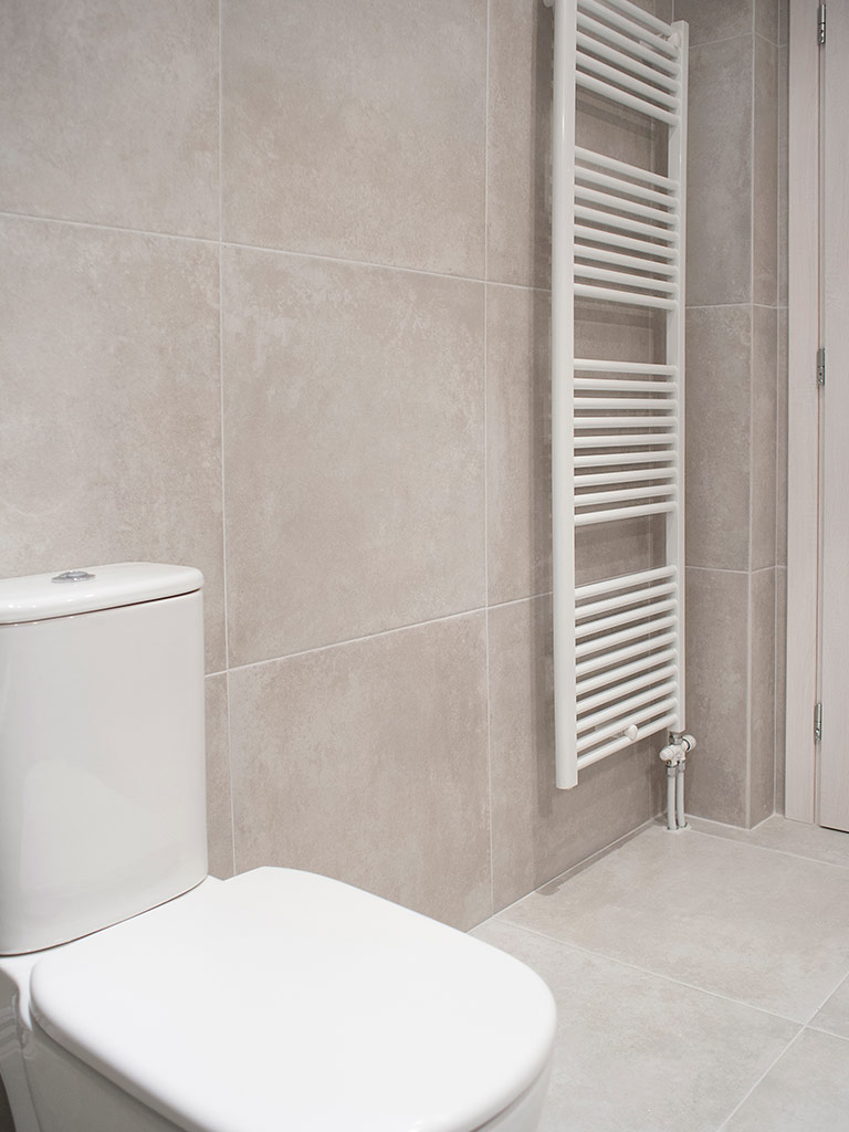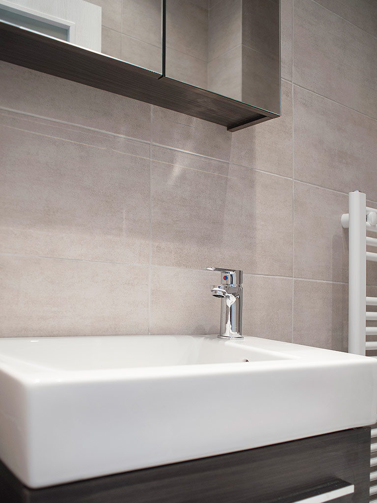 Μια εξαιρετική συνεργασία και ένα εξαιρετικό αποτέλεσμα. Στο έργο αυτό χρησιμοποιήθηκαν διαφορά πλακάκια βιομηχανικού ύφους, πλακάκια σε αποτέλεσμα τούβλου μέχρι και πλακάκια σε αποτέλεσμα ξύλου για τους πάγκους της ταράτσας. Προτιμήθηκαν εντοιχισμένα συστήματα ειδών υγιεινής για λόγους καθαριότητας. Λόγω της μεγάλης χρήσης τα αξεσουάρ μπάνιου επιλέχτηκαν ειδικά για να έχουν μεγάλες αντοχές.
