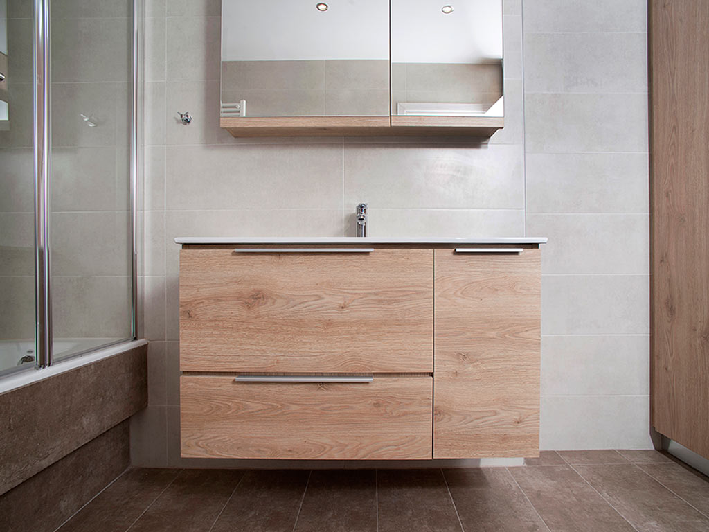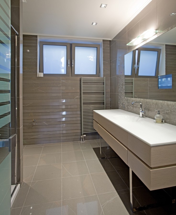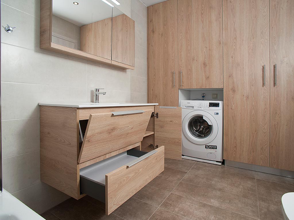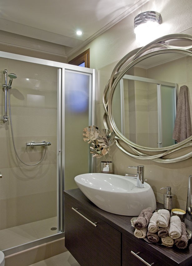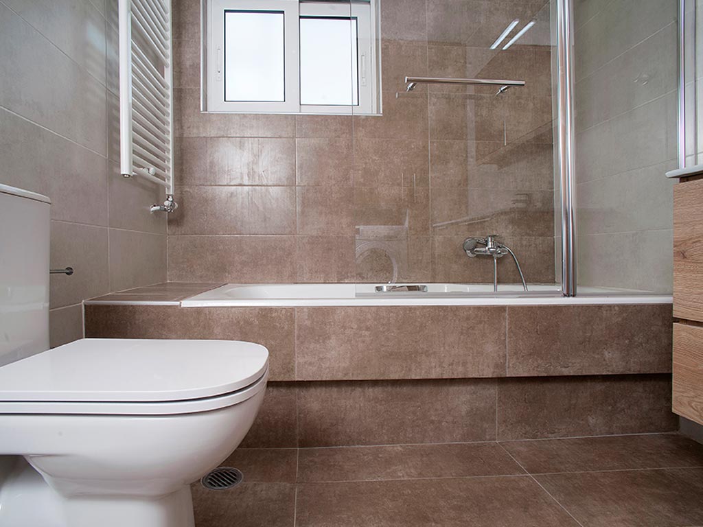 Για την οικία στην Αγία Βαρβάρα η εταιρία μας προμήθευσε πλακάκια σε τμήμα των δαπέδων του διαμερίσματος και στους εξώστες. Λευκά πλακάκια σε αποτέλεσμα τσιμέντου χρησιμοποιήθηκαν επίσης στην πλάτη της κουζίνας. Για τους χώρους των μπάνιων προμηθεύτηκαν είδη υγιεινής και έπιπλα. Μπορείτε να μάθετε περισσότερα για το έργο εδώ.